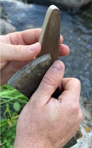 Bartholomew watched as Ian returned to his tree trunks. Then he took a sandstone from his pocket and began rubbing his ax blade with it.