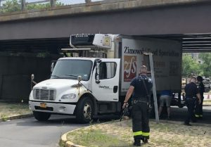 But the mechanics, police and firemen weren’t able to dislodge it; the truck was solidly jammed under the bridge.