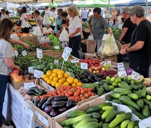 Market Stall Asparagus Green Beans Eggs